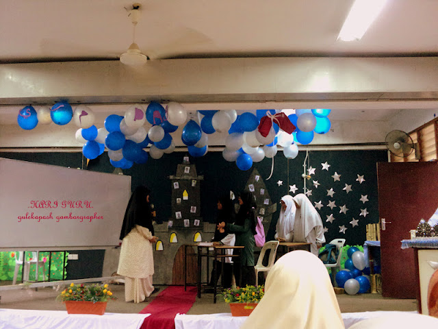 sebenarnya agak kelam kabut hari tuh, sebab banyak sangat program yang bertindih-tindih, dan nak kena settle sebelum cuti. memandangkan jumaat tuh last day sekolah, maka adelah guru-guru yang macam chips more.. lari ke sana ke mari. kejap ada, kejap takde.hehehe